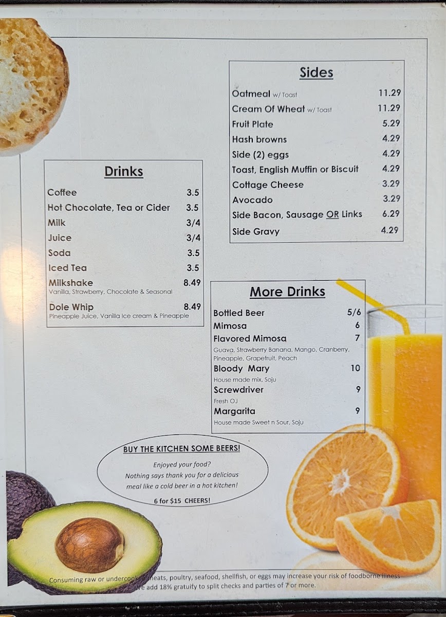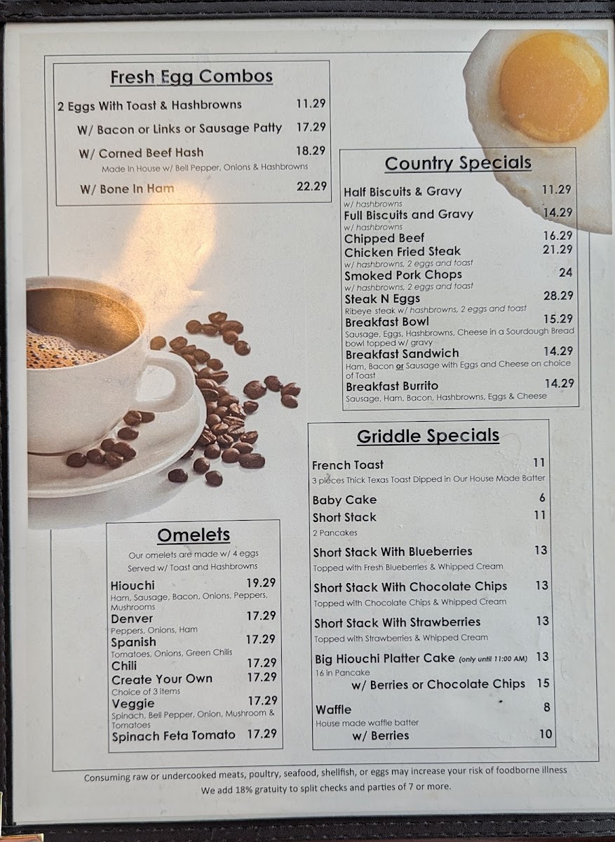 The menu boasts a delightful array of breakfast options, each crafted with care. Guests rave about the huge portions and generous flavors, particularly the celebrated Pork Verde Burrito and the gigantic pancakes served on pizza pans. Diners have described the Cuban sandwich as the best they've ever tasted, making it a must-try!